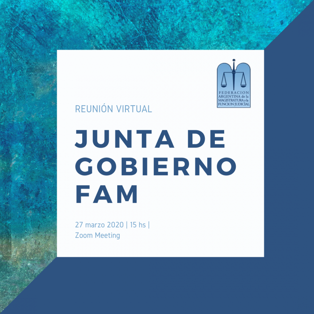 La Federación Argentina de la Magistratura y la Función Judicial no sesa de trabajar en estos momentos extraordinarios que le toca vivir al país y al mundo entero. Por ello, su reunión de Junta de Gobierno tendrá modalidad virtual el día viernes 27 de marzo a las 15 horas a través de Zoom Meeting.
