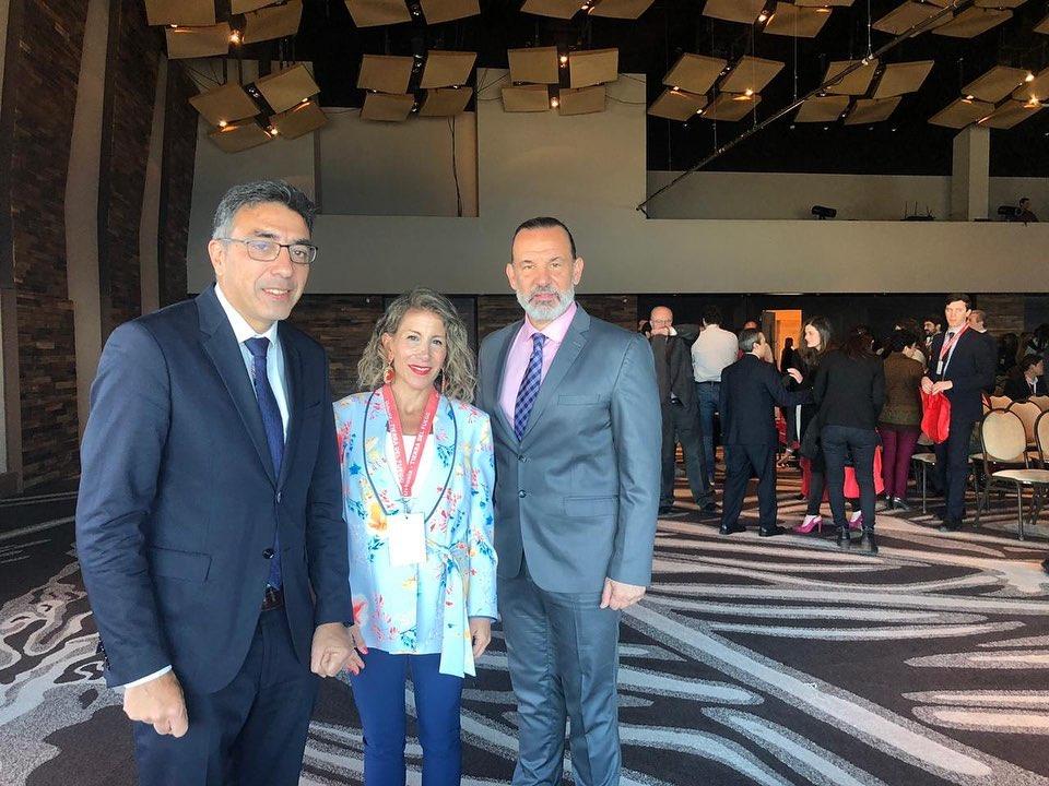 Ariel Ariza con Guillermo Penza, Presidente de la Asociación de Magistrados y Funcionarios de Tierra del Fuego, Antártida e Islas del Atlantico Sur y Paula Schapochnik, Secretaria responsable de la organización del evento