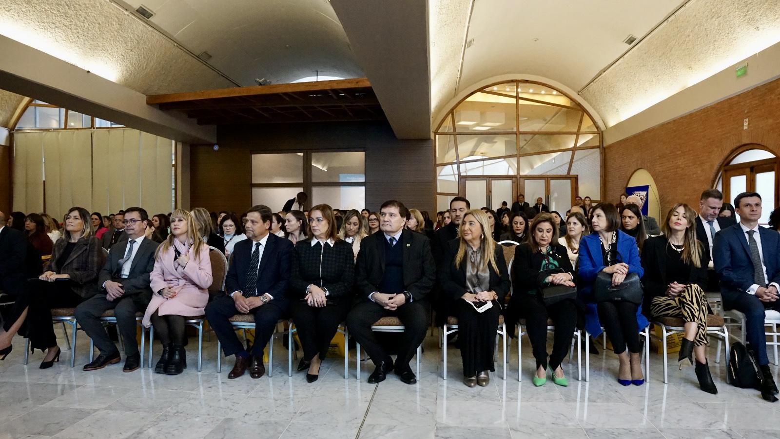 Participaron del acto de apertura Ana Lía Larrea, presidenta del Colegio de Magistrados y Funcionarios de San Juan, Gloria Liliana Pasetto y Eduardo Riveros de la Dirección del Secretariado de la FAM, y la Ministra del Superior Tribunal de Justicia de San Juan, Adriana García Nieto.