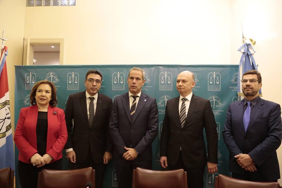 Por su parte el presidente de la FAM, Ariel Ariza, destacó el apoyo internacional y nacional a los jueces y funcionarios amenazados: “Estamos hablando de independencia judicial, de democracia y de Estado de derecho. La situación de Rosario excedió los límites de la provincia de Santa Fe y se hizo una preocupación nacional y regional, por eso debo mencionar el apoyo de la Federación Argentina de Colegios de Abogados, la Junta Federal de Cortes y Superiores Tribunales de Justicia, y finalmente la presencia de Walter Barone trayendo a la Argentina el apoyo de la Federación Latinoamericana de Magistrados”.