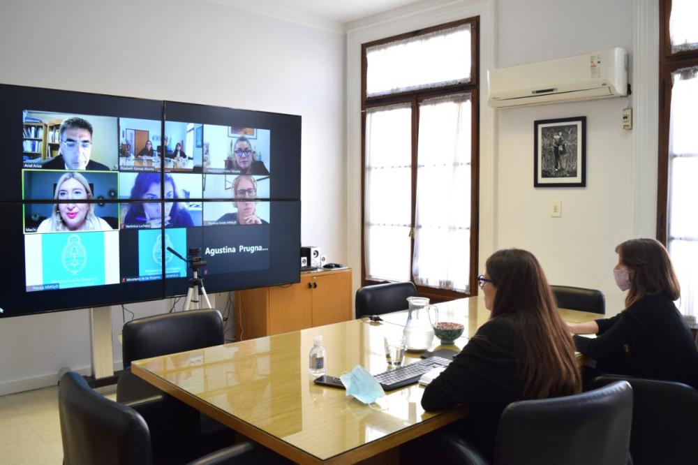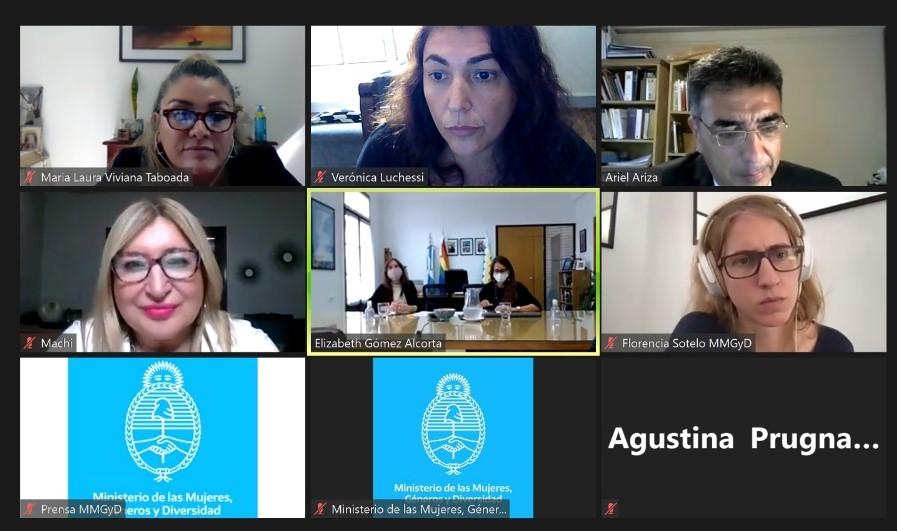 Del encuentro virtual participó el presidente de la Federación, Ariel Ariza, la vicepresidenta, Marcela Ruiz, la secretaria de Políticas Judiciales, Viviana Taboada, y Verónica Luchessi del equipo de comunicación. Acompañaron a la ministra Josefina Kelly, secretaria de Políticas contra la Violencia por razones de género, y Florencia Sotello, directora Nacional de Fortalecimiento del Acceso a la Justicia en casos de Violencia por Motivos de Género.
