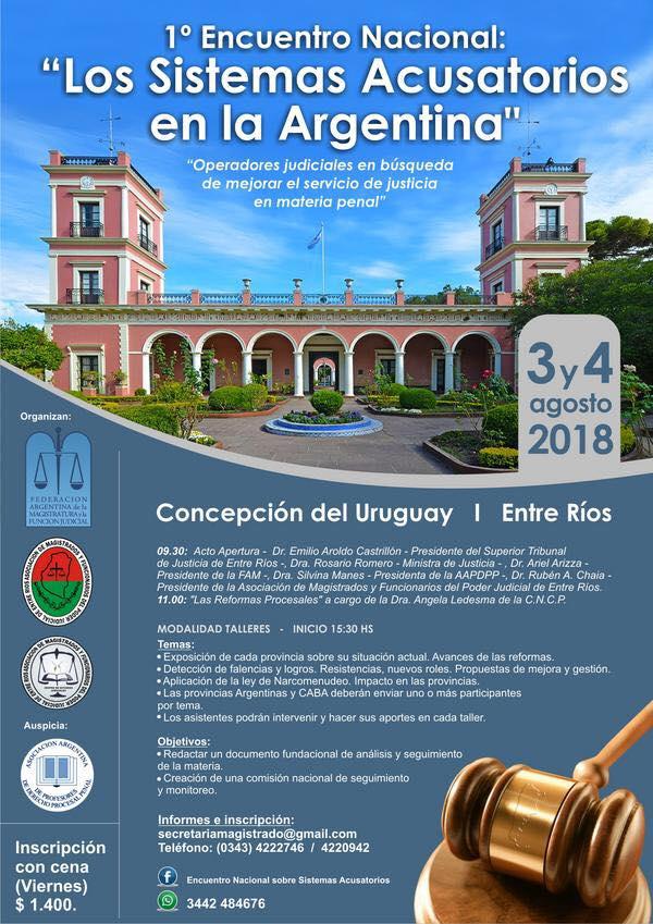 “Este encuentro nace con el objetivo de evaluar la situación actual de los sistemas que se están aplicando en cada provincia, sean acusatorios o mixtos. Además, para las provincias que estén en proceso de reforma, queremos conocer cuál es la situación actual, cuáles son los avances que han tenido y cuáles son las dificultados. Además, se plantearán los desafíos que tuvieron las que ya han implementado sistemas acusatorios para que otras provincias puedan tomar esas experiencias, cuáles han sido las ventajas y los beneficios que trajeron aparejados los sistemas acusatorios, entre otras consideraciones”, explicó Rubén Chaia, presidente de la Asociación de Magistrados y Funcionarios del Poder Judicial de Entre Ríos.